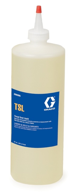 TSL Throat Seal Liquid, 1 qt (0.95 l)Throat Seal Liquid (TSL) prevents paint and coatings from drying onto the displacement rod and packings, extending the life of the pump.Maintaining your pump is essential for long life and reliability.